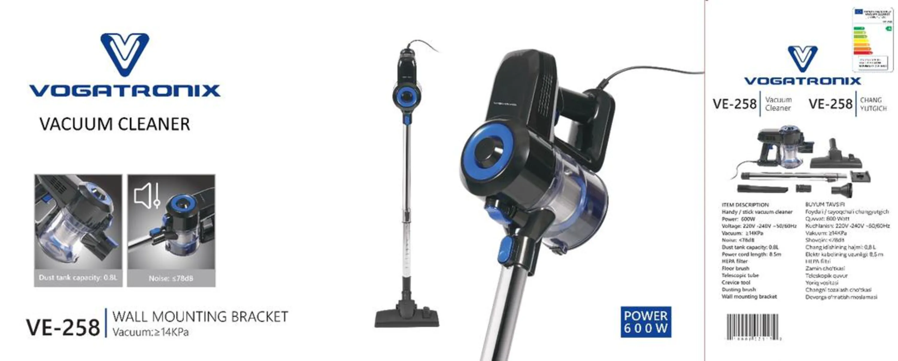 جارو عصایی وگاتی VE258 با طراحی ارگونومیک و توان 600 وات، انتخابی عالی برای نظافت منزل است. مناسب برای انواع سطوح مانند فرش، سرامیک، پارکت و موکت. دارای مخزن 0.8 لیتری و طول سیم 8.5 متر برای دسترسی آسان به نقاط دور.