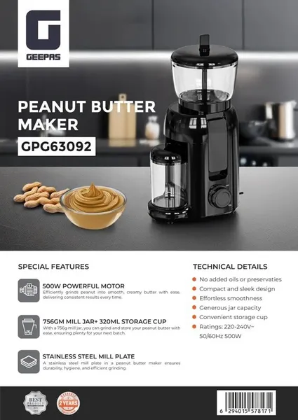 کرهگیر جیپاس مدل GPG63092 یک دستگاه کاربردی و قدرتمند است که به شما امکان میدهد در خانه یا کافیشاپ، کرهای تازه، سالم و بدون مواد افزودنی از انواع مغزیجات تهیه کنید. این محصول با طراحی مدرن، کیفیت ساخت بالا و کاربری آسان، گزینهای ایدهآل برای افرادی است که به تغذیه سالم و تهیه خوراکیهای خانگی علاقهمندند.