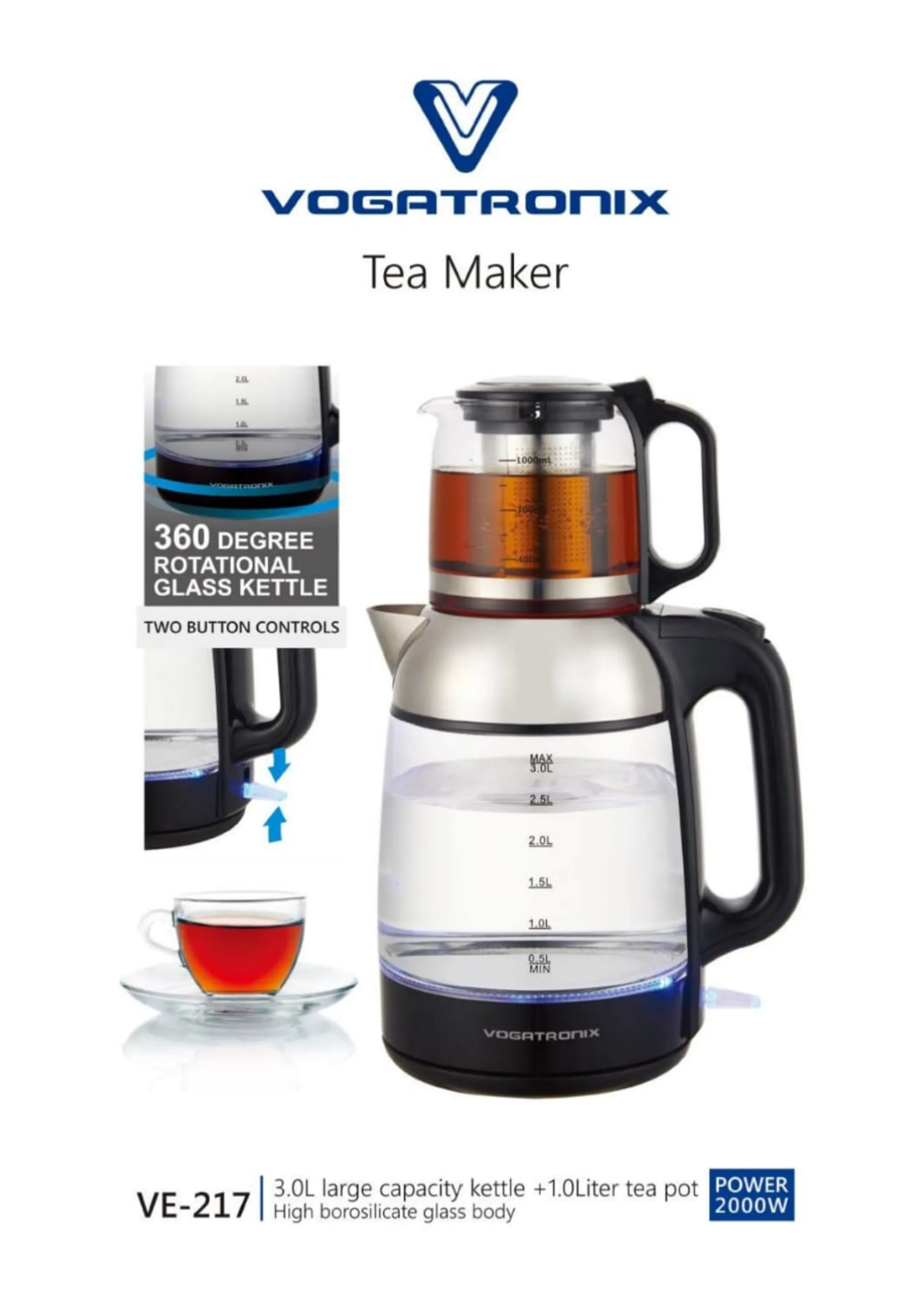 چای ساز تلیونیکس مدل TTM5012 ظرفیت 2 لیتر با کتری استیل ضد زنگ