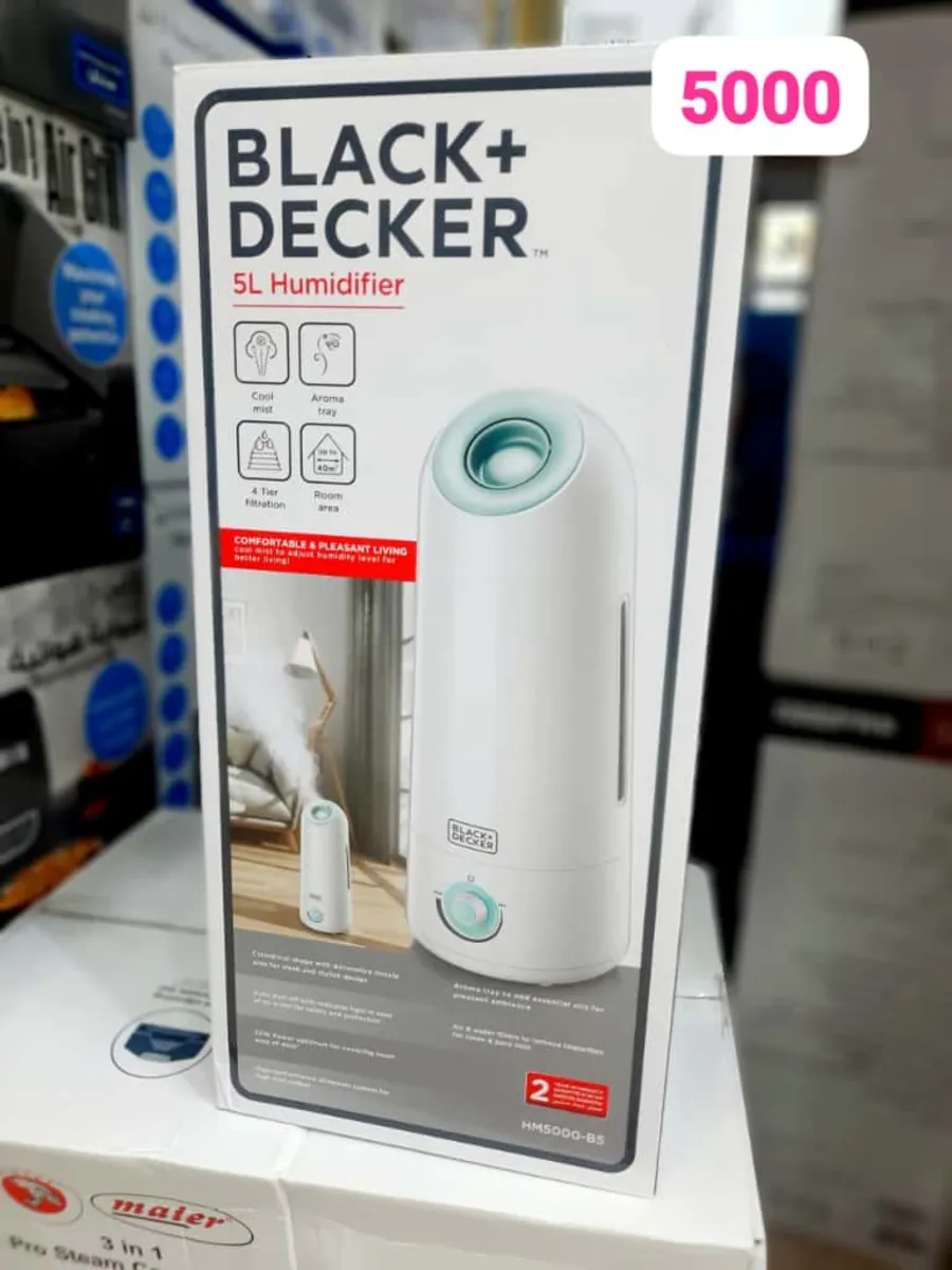 دستگاه بخور سرد بلک اند دکر مدل HM5000 یک دستگاه بسیار خوش ساخت با طراحی مدرن و مخزن 5 لیتر میباشد که برای فضایی تا 40 متر مناسب است و رطوبت فضای شما را تنظیم خواهد کرد.
