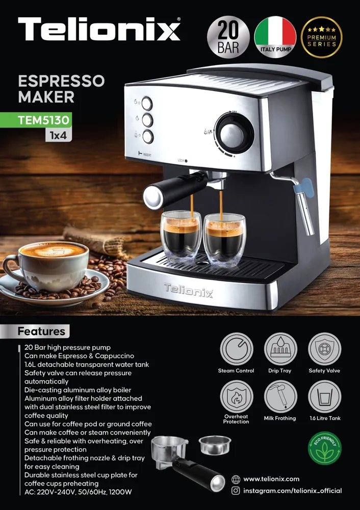 قابلیت تهیه انواع نوشیدنی، از اسپرسو تا لاته و کاپوچینو، همراه با نازل بخار اختصاصی.