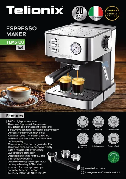 اسپرسوساز حرفه ای تلیونیکس مدل TEM5100