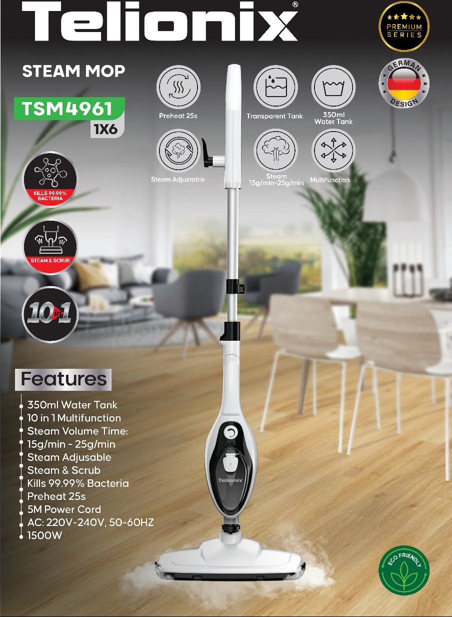 جارو برقی طی دار تلیونیکس مدل TSM4961: انقلابی در نظافت با قدرت بخار خشک و ضدعفونی حرفهای