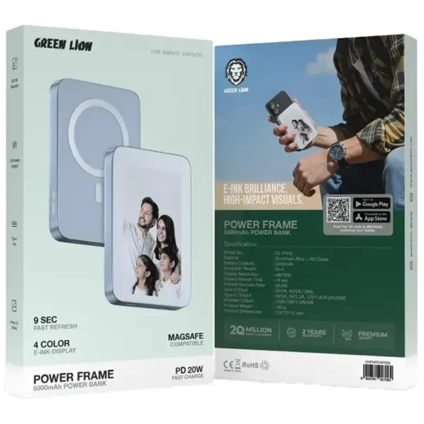اگر بهدنبال یک پاوربانک مدرن، سبک و فوقالعاده شیک هستید که علاوهبر سرعت شارژ بالا، تجربهای متفاوت از نمایشگر و طراحی به شما بدهد، پاوربانک Green Lion Power Frame 5000mAh انتخاب لوکس و هوشمندانهای است.