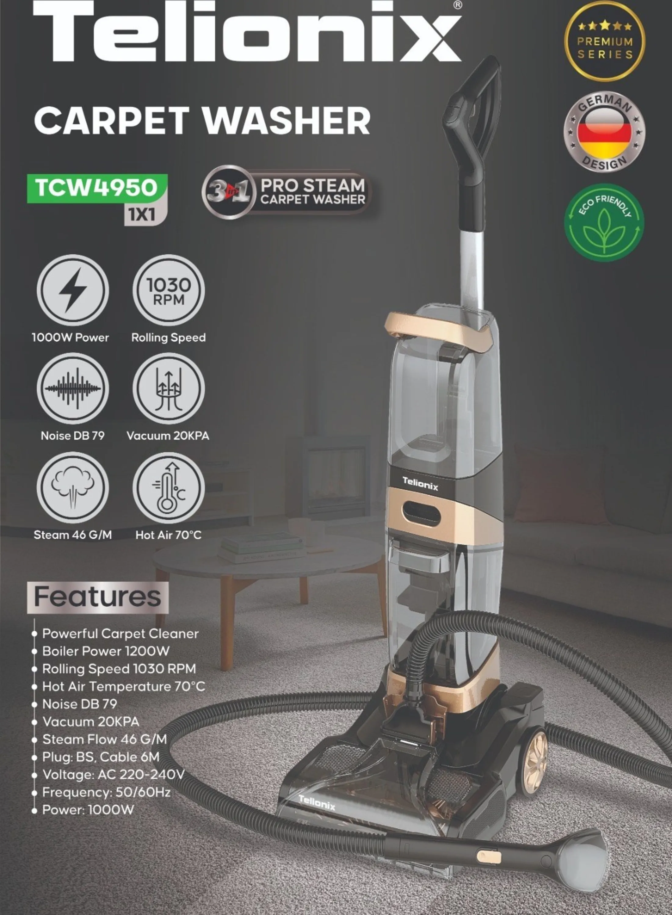 فرششوی و مبل شوی 3 کار تلیونیکس مدل TCW4950. تمیزکاری سریع و عمیق برای فرش و مبلمان خانه شما عزیزان