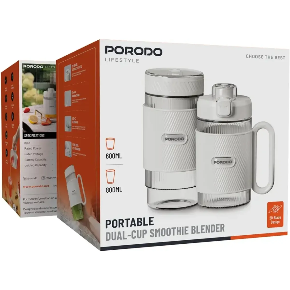 مخلوط کن قابل حمل دو لیوانه پرودو مدل Porodo Lifestyle Portable Dual-Cup Smoothie Blender