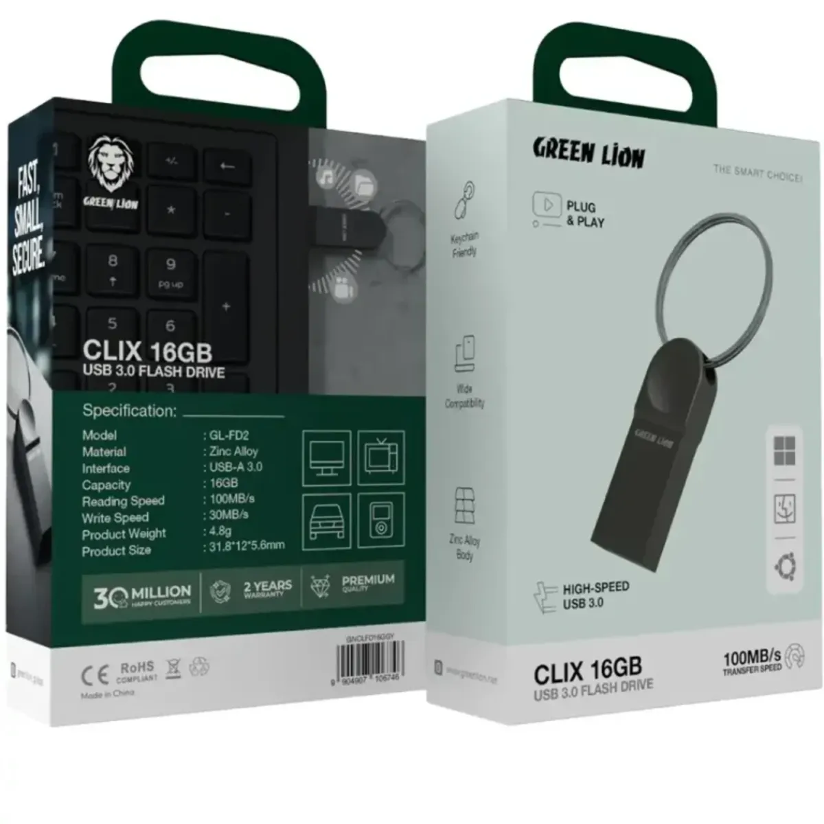 فلشمموری Green Lion Clix USB 3.0 Flash Drive یک حافظه جانبی بسیار سریع، قابلاعتماد و خوشساخت است که با بدنهای زیبا از آلیاژ روی (Zinc Alloy) طراحی شده و در ظرفیتهای 16GB، 32GB، 64GB و 128GB عرضه میشود.